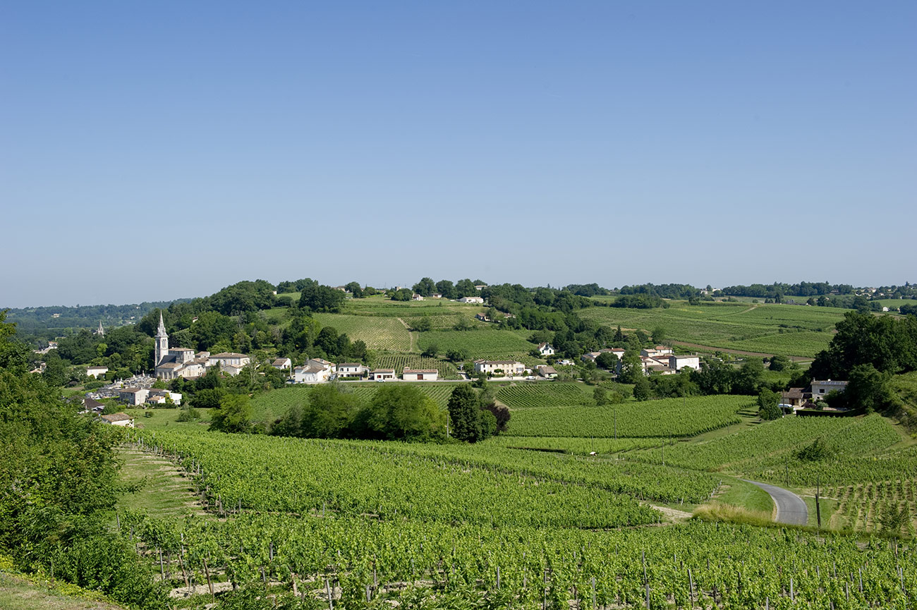 including a succession of terraces, characterized by valleys, groves, winding country roads and attractive residences. The clock tower of the village of Fronsac is situated in a green setting. Highlighting the territory of Canon-Fronsac, the meandering Dordogne river can be seen from the estate’s belvedere. Close to Saint-Emilion and the estuary, the gentle and secretive countryside of Fronsac benefits