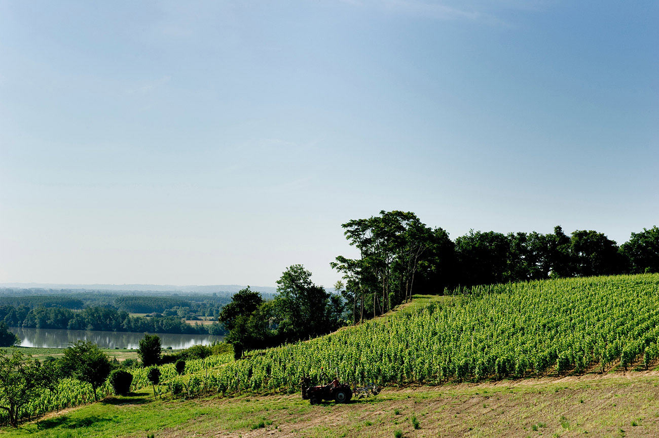 of the soils and vines: observation of the parcels; use of well-adapted rootstock when replanting; gentle soil tilling; grassing between the rows with oats or barley; development of deep and spread out roots to simplify soil tilling and to offer a buffer against too much heat or humidity; mechanical soil plowing under each row, in view of eliminating the use of herbicides.